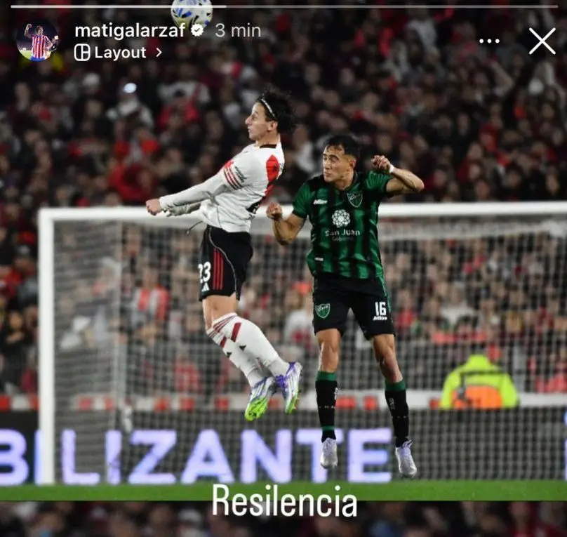 Instantes después de la victoria ante, Galarza compartió una imagen suya peleando una pelota en el área, pero lo más llamativo fue la palabra que eligió para acompañar la foto: “Resilencia”. Rápidamente, los hinchas notaron que dicha palabra estaba mal escrita, ya que es “Resiliencia”. Esto causó un gran revuelo en las redes sociales, donde algunos fanáticos tomaron su error de ortografía como puerta de entrada para seguir criticándolo por no haber demostrado estar a la altura desde que comenzó a vestir el Manto Sagrado.