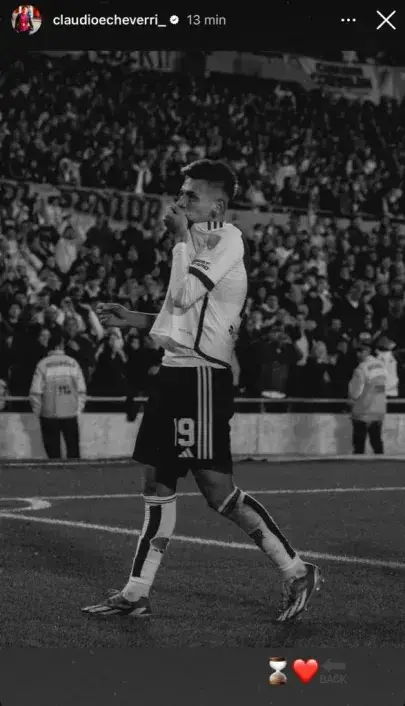 Fue justo después de este partido que Echeverri se expresó en sus redes sociales, publicando una imagen de cuando era futbolista de River, besándose el escudo del equipo frente a los hinchas en el Monumental. Acompañando la fotografía, el joven delantero incluyó tres emojis: un reloj de arena, un corazón y un «back». Este gesto ha generado especulaciones sobre su futuro en el Bayer Leverkusen y ha sembrado la ilusión en torno a un posible regreso a Núñez.