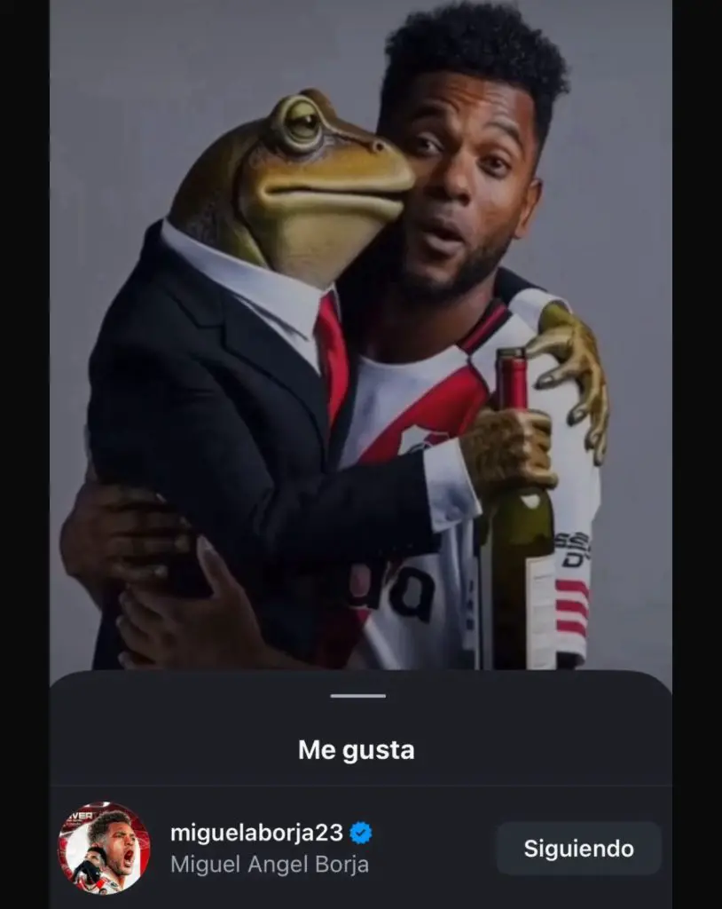 Uno de los momentos más destacados de esta tendencia se produjo cuando Miguel Borja, cuestionado delantero del plantel, reaccionó a una publicación en la que aparece abrazado junto al meme en un contexto humorístico. Al darle me gusta a esta imagen, el Colibrí logró desatar una ola de comentarios, lo que provocó tanto sorpresa como polémica entre los seguidores del club. Algunos interpretaron esta acción como una satirización de su propia situación, ya que el DT no le suelta la mano por sus malas actuaciones, ni siquiera sabiendo que se irá en el próximo mercado.