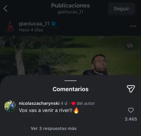 Los rumores ganaron fuerza con un gesto simple pero potente en las redes sociales. Hace unos días, Prestianni subió una serie de fotos a su Instagram, entre ellas una junto a Nicolás Otamendi. Rápido de reflejos, los fanáticos de River inundaron los comentarios pidiendo su regreso. Uno de ellos escribió textual: “Vos vas a venir a River”. ¿Y qué hizo el pibe? Le dio me gusta al comentario, desatando una ola de euforia en Núñez.