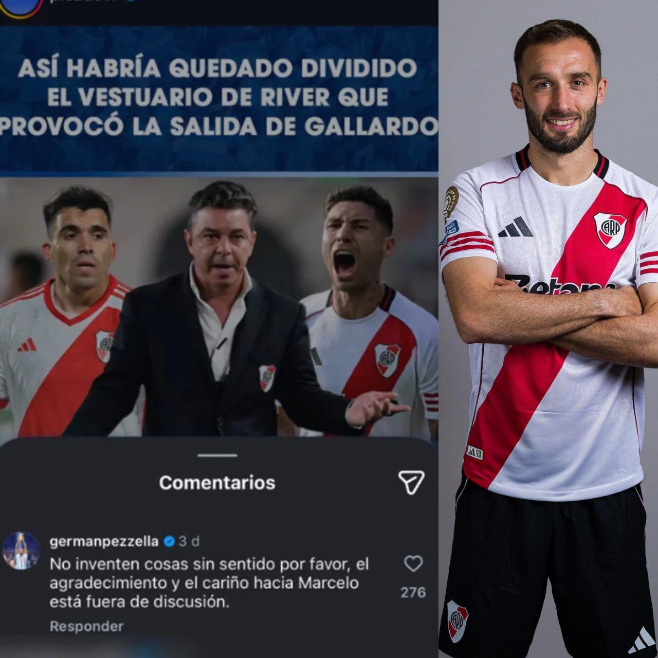 Sin embargo, las acusaciones no tardaron en ser desmentidas por los propios protagonistas. Germán Pezzella, a través de sus redes sociales, salió al cruce de los rumores con un contundente mensaje: “No inventen cosas sin sentido por favor, el agradecimiento y el cariño hacia Marcelo Gallardo está fuera de discusión”. El defensor, quien se recupera de una grave lesión de ligamentos, dejó claro su respeto y admiración por el entrenador más ganador de la historia de River.