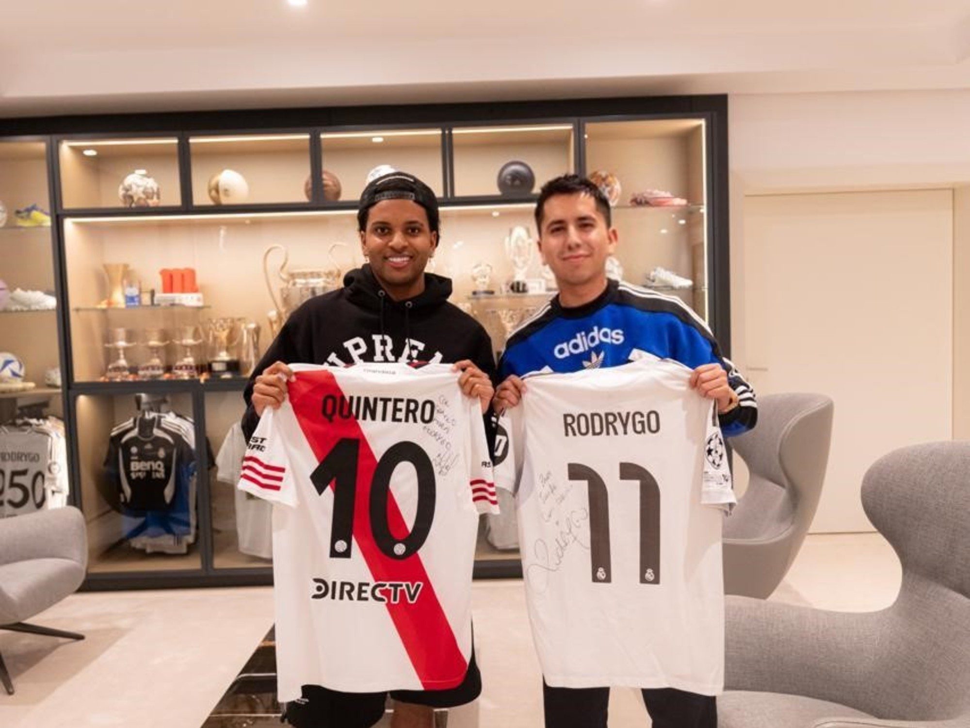 - Intercambio de camisetas: El colombiano le envió al brasileño una camiseta de River con su número 10, y Rodrygo le respondió con una casaca del Real Madrid firmada.