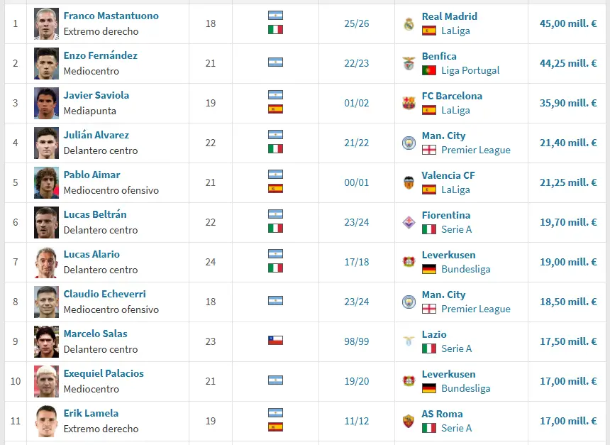 A continuación, mencionaremos las transferencias más trascendentales en la historia de la institución de Núñez, la gran mayoría gracias a futbolistas surgidos del incomparable semillero Riverplatense. Muchos de estos jugadores se desempeñan actualmente en el Viejo Continente.
