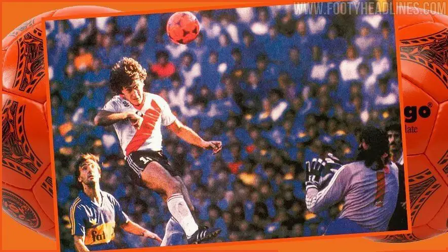 El sitio especializado Footy Headlines filtró recientemente unas imágenes de la que sería la nueva camiseta de entrenamiento de River: basada en la pelota Tango, cuyo su legado sigue siendo un referente en la historia del fútbol, pero con el toque anaranjado de aquella jornada ochentera.