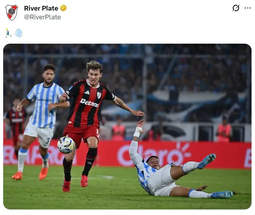 La cuenta oficial de River en la red social X publicó una imagen de Rojo tirado en el suelo, en el preciso instante en que Facundo Colidio se escapaba para anotar el primer gol del partido. La foto, lejos de ser una simple ilustración del juego, fue interpretada por muchos como una clara provocación y una falta de respeto hacia el jugador y el elenco de Avellaneda.